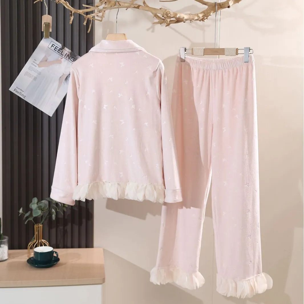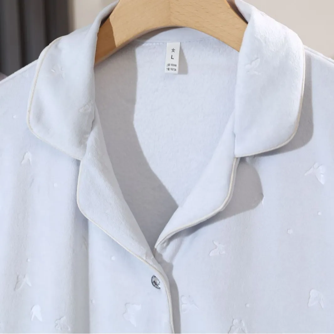 海岛绒秋冬睡衣超柔双面蝴蝶压花女长袖长裤高级感家居服 - 甜睡季轻奢家居服