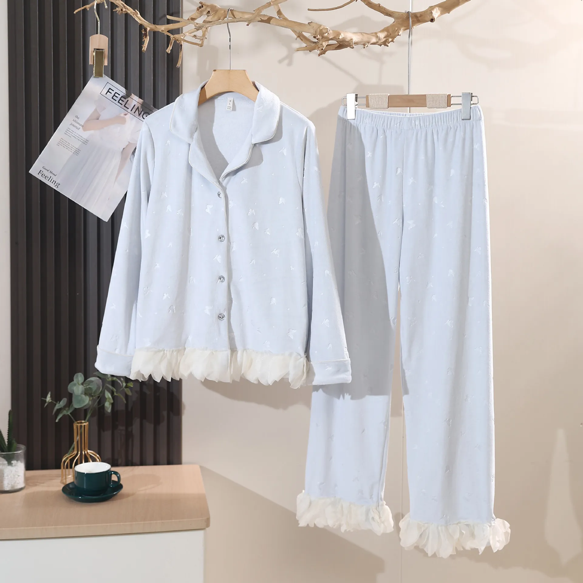 您的位置:他他商城  >   >  海岛绒秋冬睡衣超柔双面蝴蝶压花女长袖长裤高级感家居服