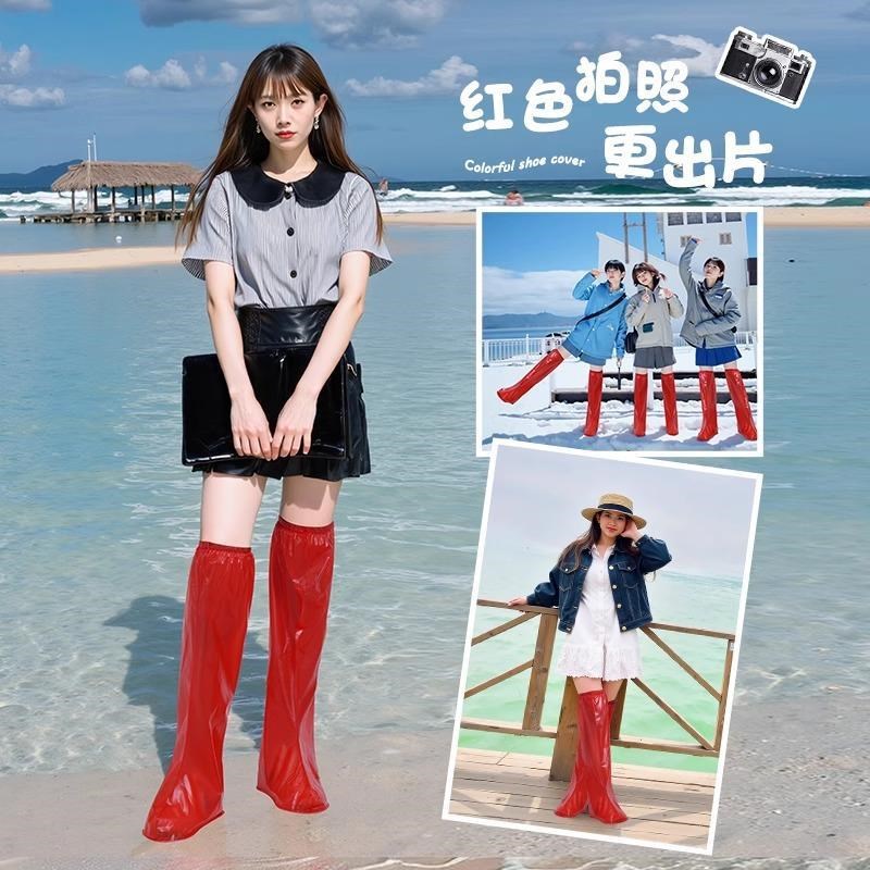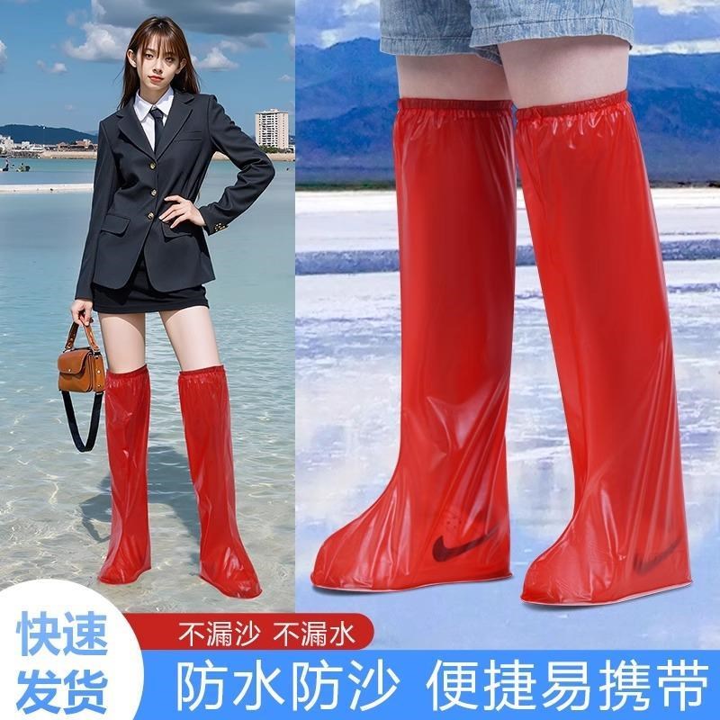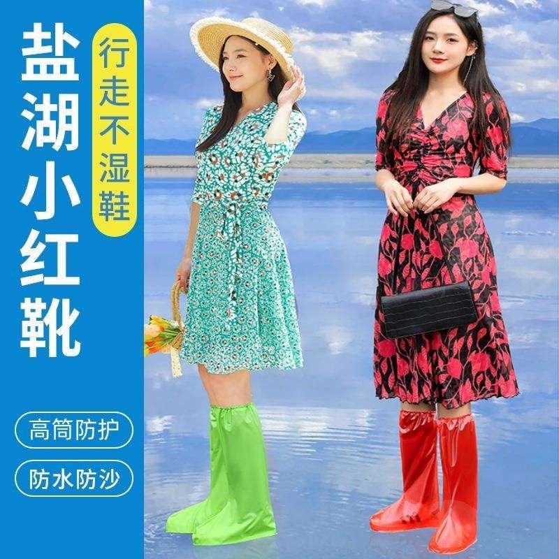 茶卡盐湖专用鞋套防水高筒加厚红色雨H靴青海草原水靴沙漠防沙脚