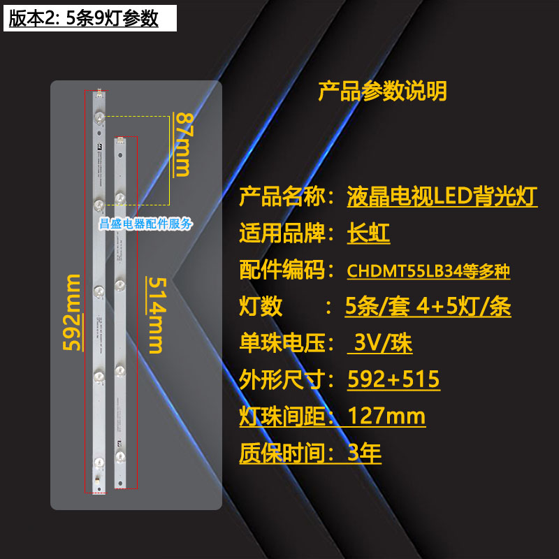 适用于 长虹55D2000i 55N1灯条 CHDMT55LB14_LED3030_V0.2 背光灯 - 昌盛电器配件