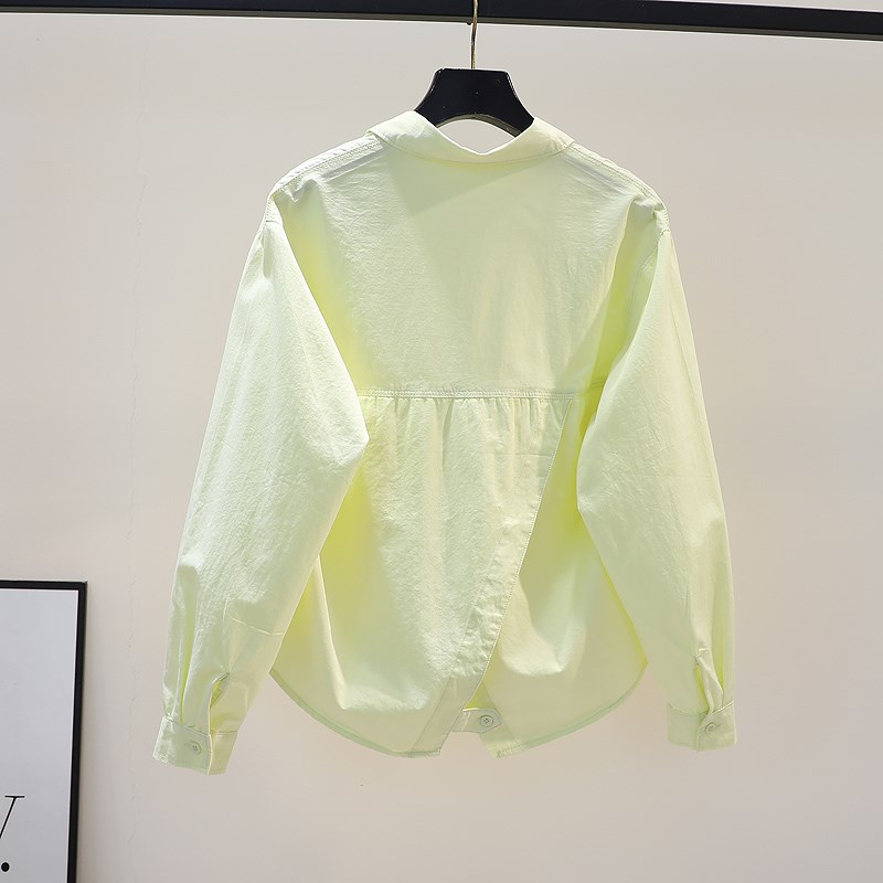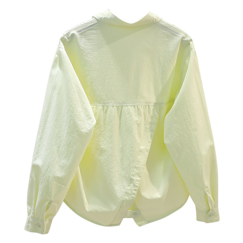 设计感背后开叉嫩黄色短款衬衫女宽松长袖衬衣2023春季薄外套上衣 - 家良辉严选店