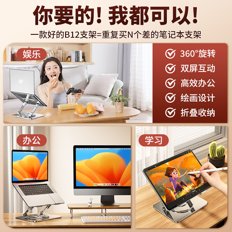 笔记本支架适用于苹果macbook可旋转桌面增高悬空升降折叠平板架子铝合金托架ipad支撑架华为pro电脑散热架 - 欣卡优旗舰店