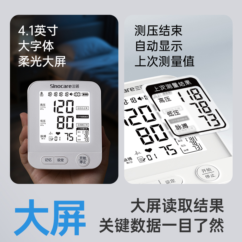 三诺臂式电子血压计医用级测压仪大屏高精准测压全自动AXD-821 - 阿里健康大药房