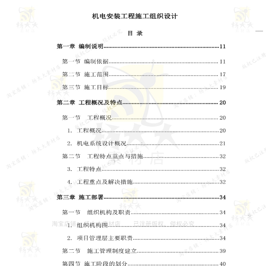 机电安装工程施工组织设计方案 机电施工组施工方设计可编辑织案 - 杨大大素材店
