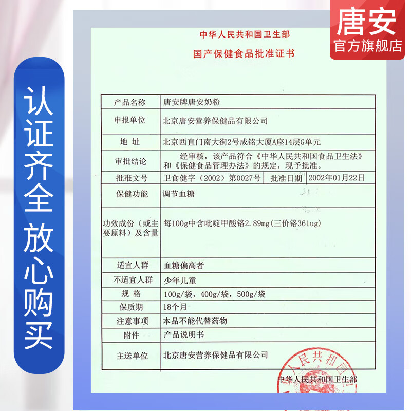 唐安牌唐安降糖奶粉调节血糖无糖化糖控糖糖安牌中老年糖尿三高奶