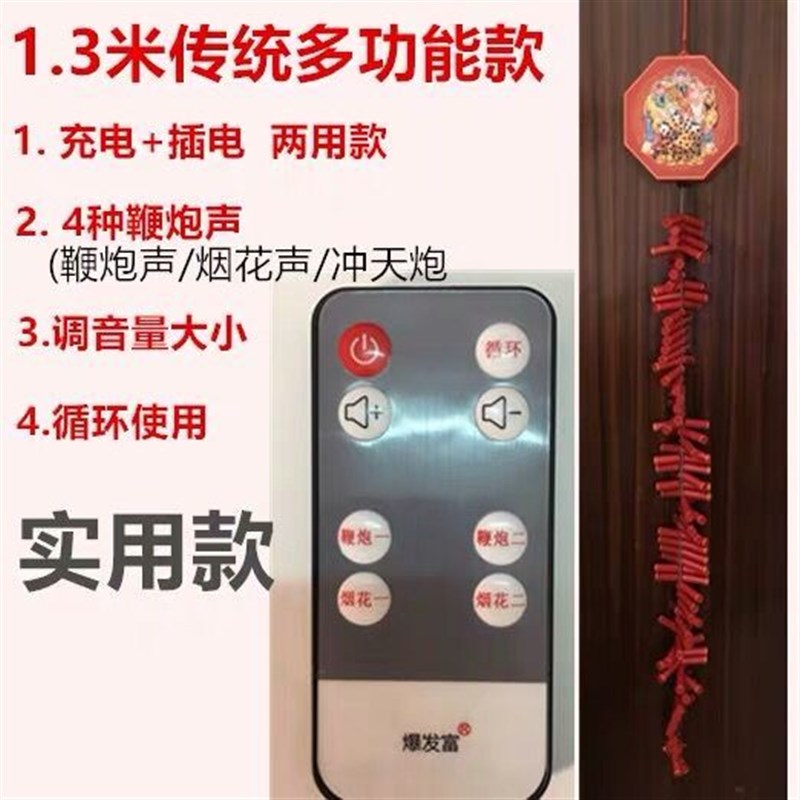 爆发富电子鞭炮新年炮竹春节仿真免插电池带响声乔迁炮仗鞕炮鞭爆 - 天过饰品铺