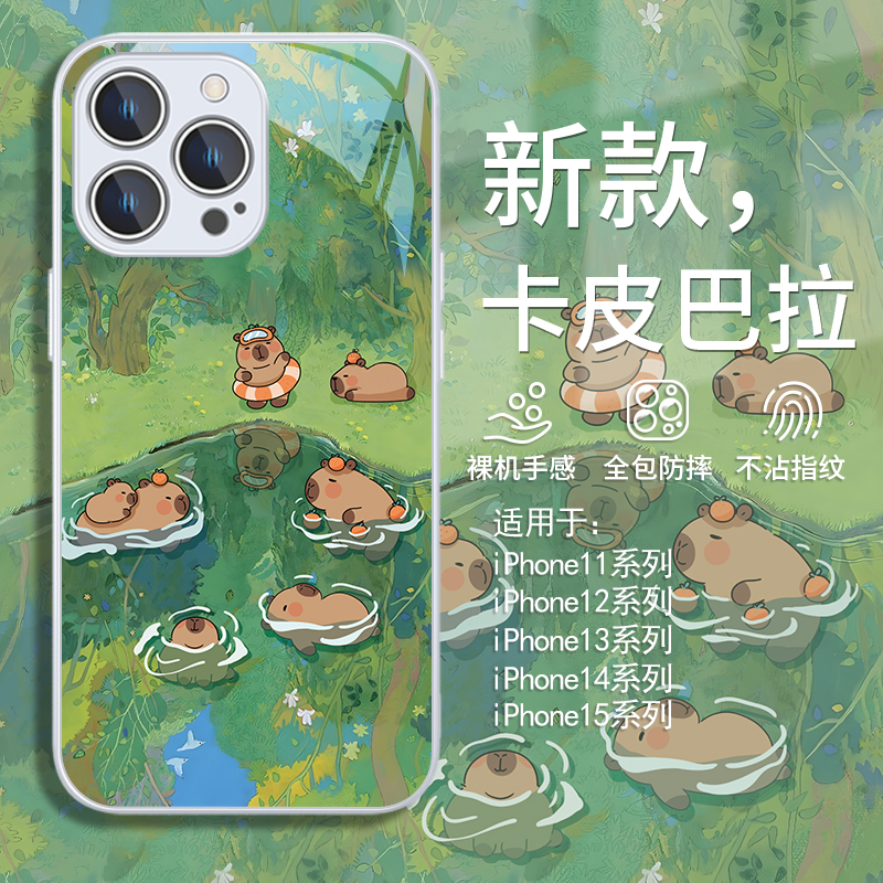 您的位置:他他商城  >   >  适用iphone15pro手机保护壳16夏天游泳水豚苹 果14新款13promax小清新12mini卡皮巴拉11绿色xsmax/xr女x玻璃8