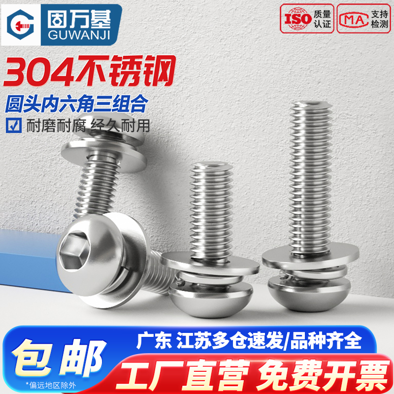 304不锈钢圆头内六角螺丝钉半圆盘头螺栓三组合螺钉M2/M3M4M5M6M8 - 固万基官方旗舰店