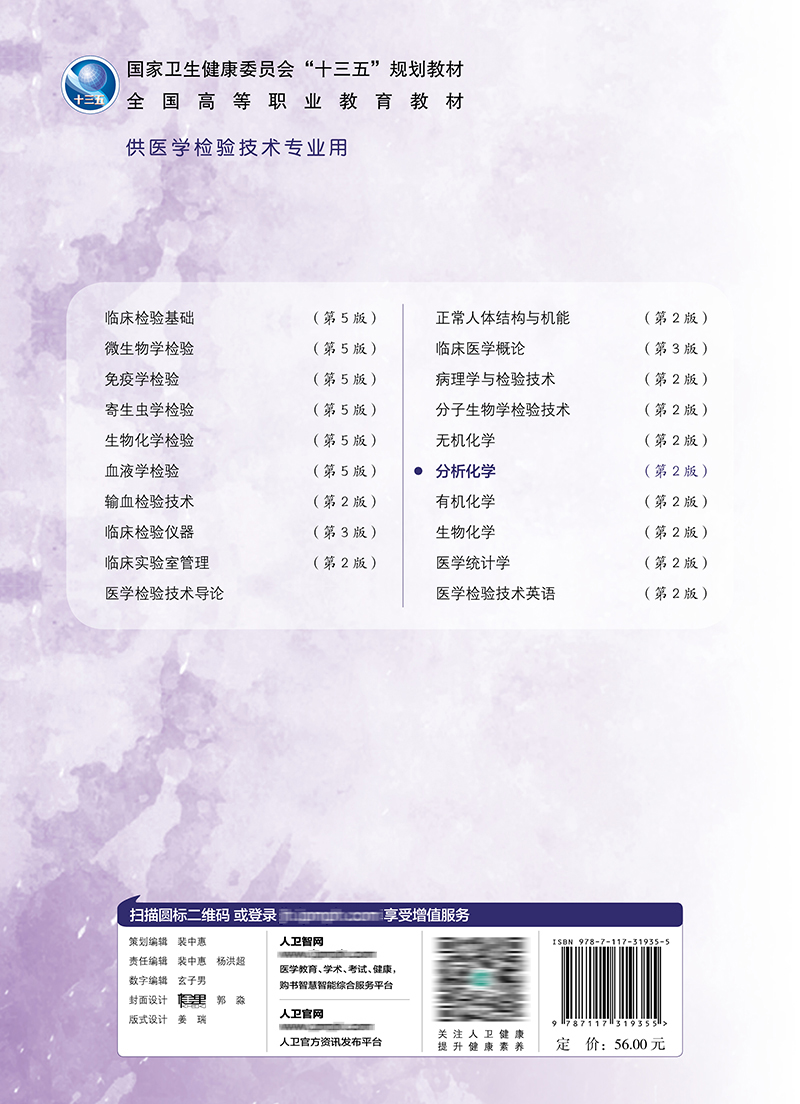 分析化学 第2版 十三五规划教材全国高等职业教育教材 供医学检验技术专业用高职大专院校 人民卫生出版社 9787117319355