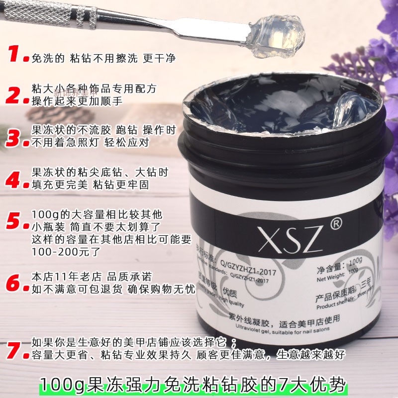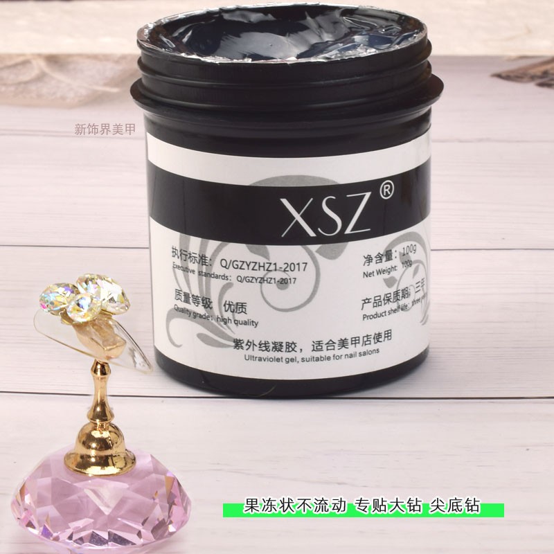 美甲店用大瓶强力果冻状粘钻胶免洗光疗胶贴大饰品尖底钻胶水100g - 新饰界美甲