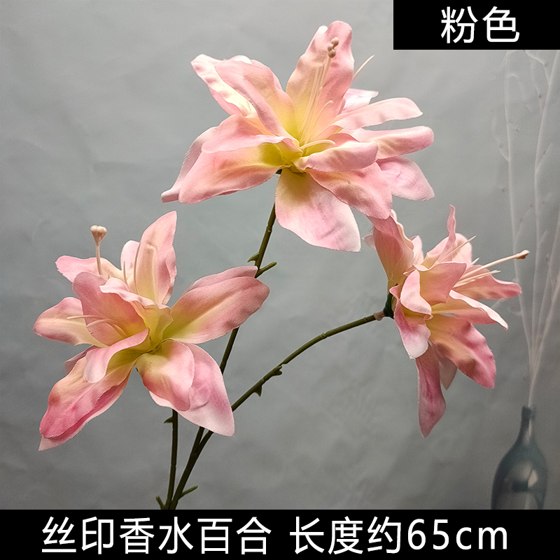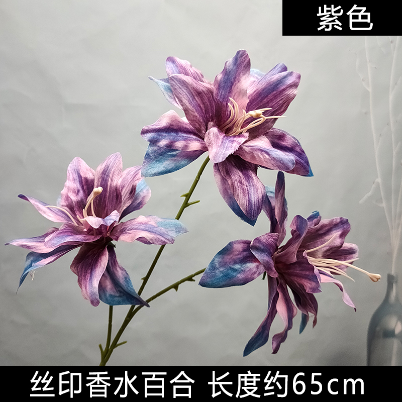 厂家批发3D打印香水百合丝印绢布纹路小百合复古色婚礼仿真花装饰 - 曹子里仿真花批发商城
