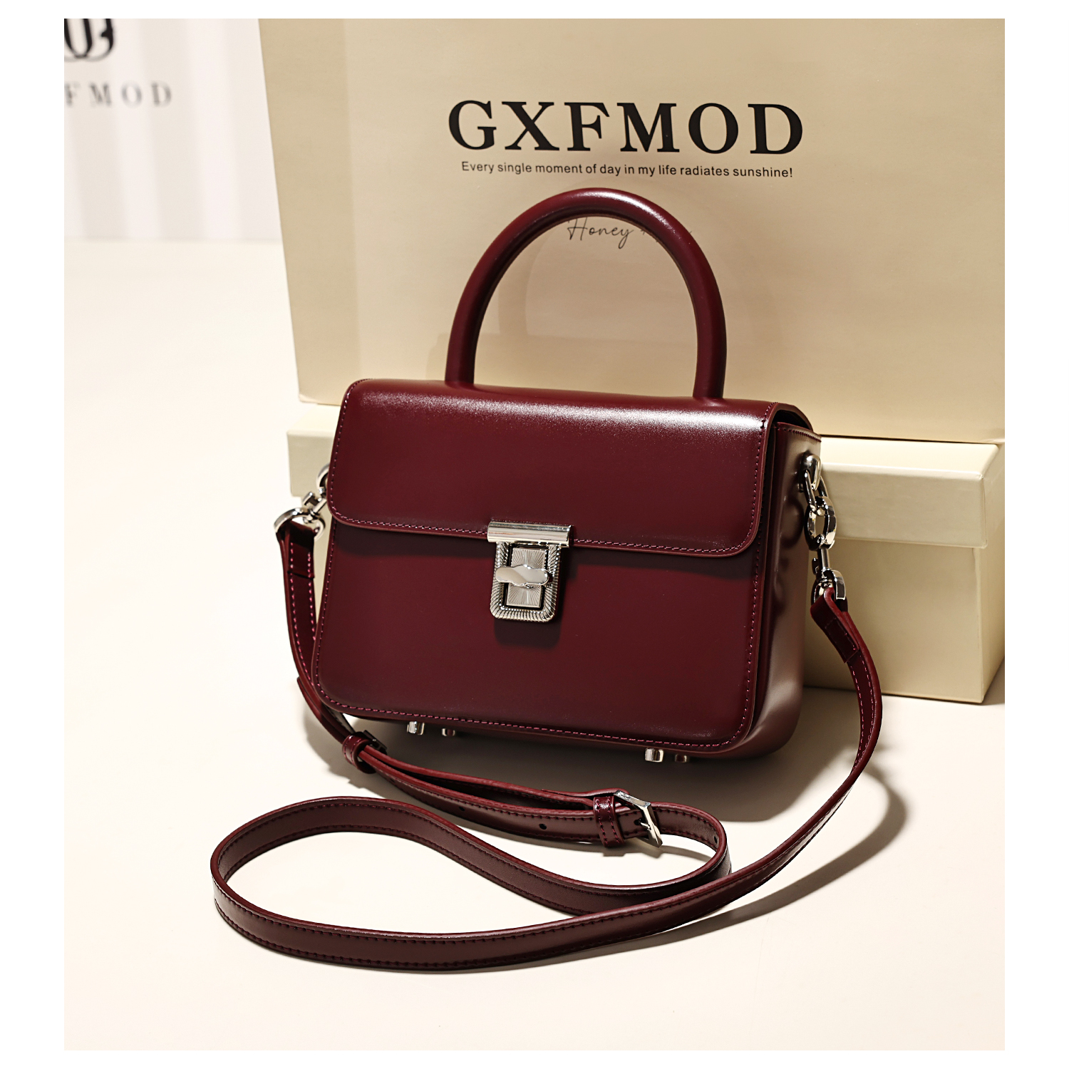 GXFMOD原创品牌红色真皮小方包2025早秋新款女包单肩手提斜挎小包