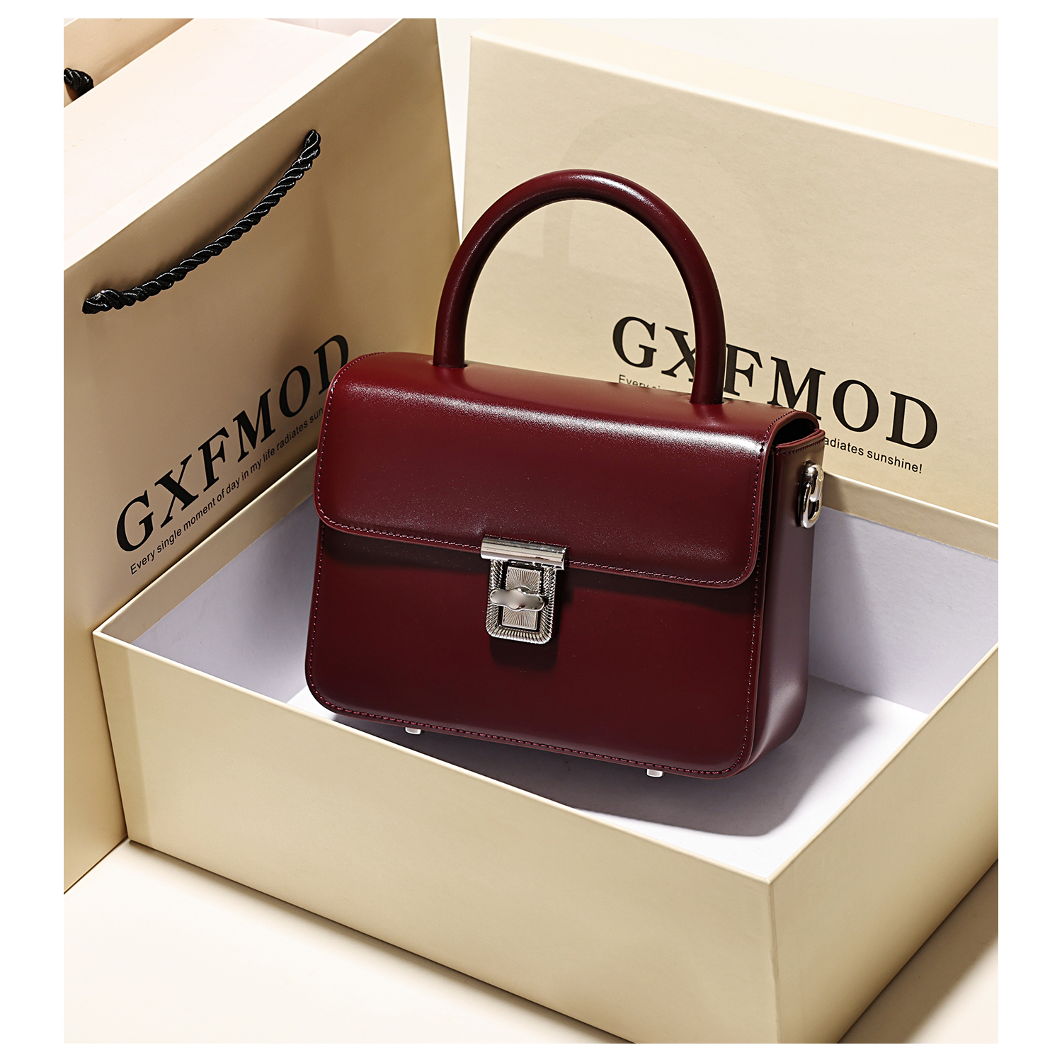 GXFMOD原创品牌红色真皮小方包2025早秋新款女包单肩手提斜挎小包 - GXFMOD独立设计