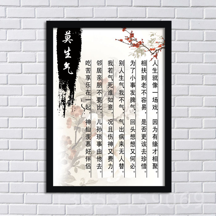 莫生气/知足乐 家庭和睦处世哲理装饰画 简约有框挂画YM667/YN729
