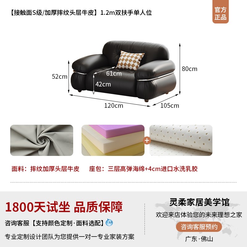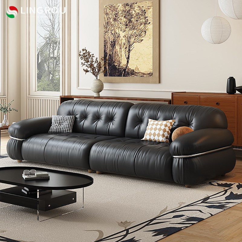 您的位置:他他商城  >  居家  >  灵柔法式复古e风黑色真皮沙发客厅2023新款小户型直排中古云朵沙