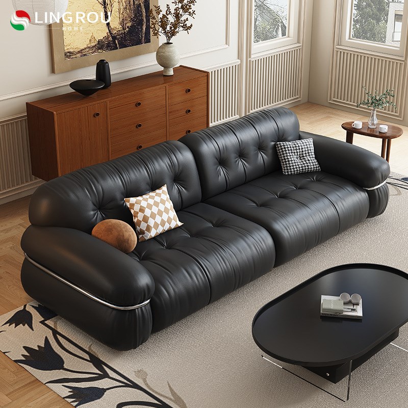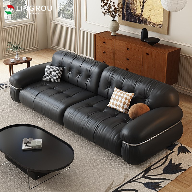 灵柔法式复古e风黑色真皮沙发客厅2023新款小户型直排中古云朵沙 - 凤荣轩日用品