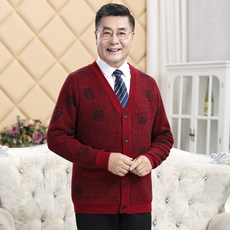 您的位置:他他商城  >  男装  >  中老年羊毛开衫加绒加厚红色喜庆爸爸妈妈针织毛衣本命年外套新款