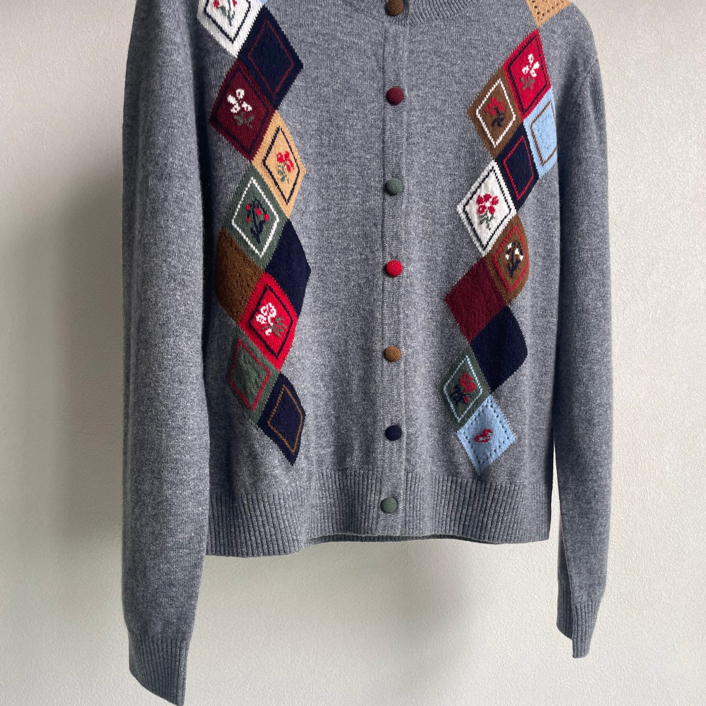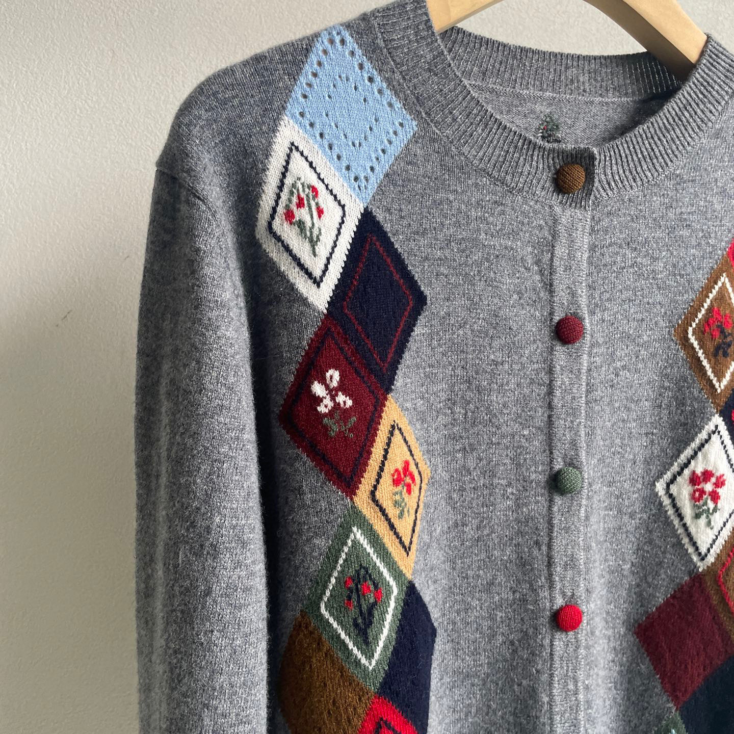 【陈都灵同款】圆领提花羊毛羊绒衫25秋冬新款菱形格纹提花开衫女 - 木小木轻奢原单店