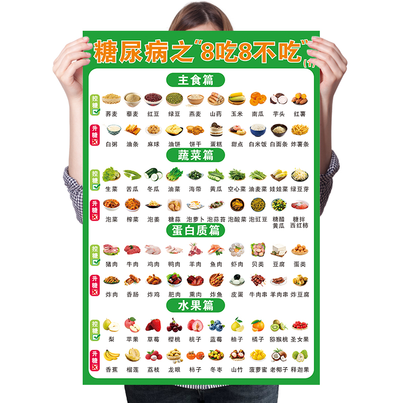 食物升糖指数表痛风患者食谱表糖尿病食谱挂图血糖生成饮食指南表 - 学习挂图海报