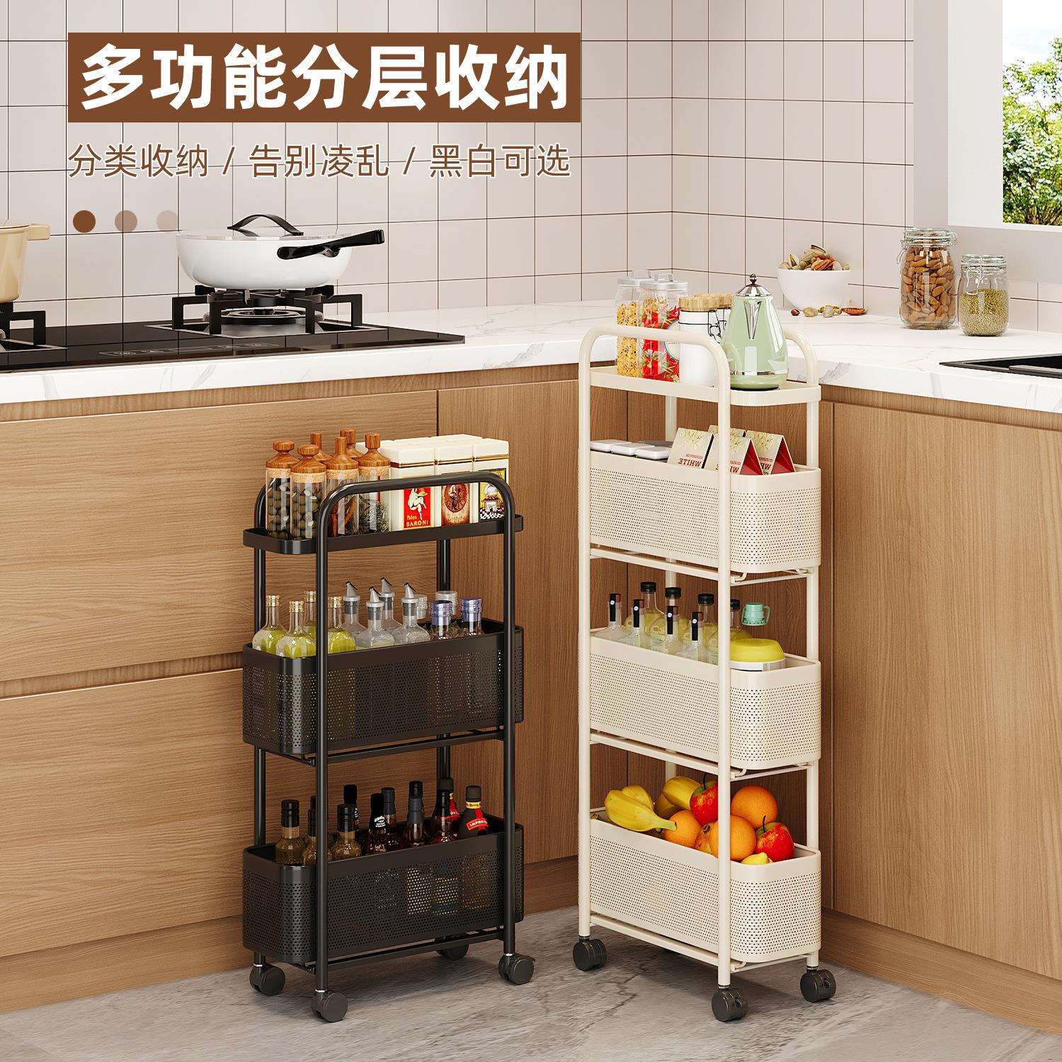 美厨物语厨房置物架冰箱侧面夹缝小推车极窄缝隙收纳柜多功能推车 - prhlnvwipf的小店