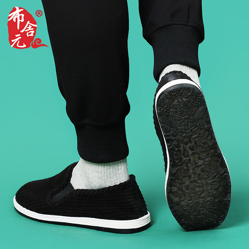 老北京布鞋男棉鞋冬季千层底灯芯绒中老年爸爸加绒保暖条绒休闲 - 布舍元旗舰店