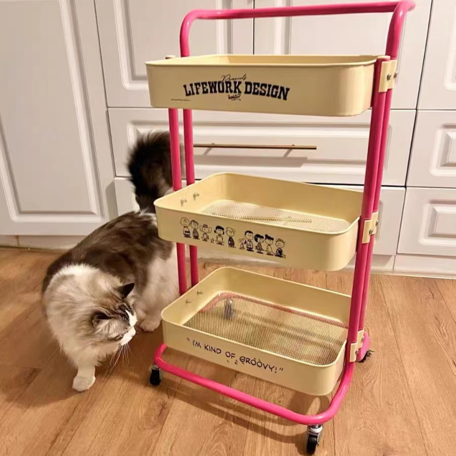 DIY史努比网红小推车客厅零食储物架卧室化妆品收纳卡通置物架 - 爱尚品家居折扣店