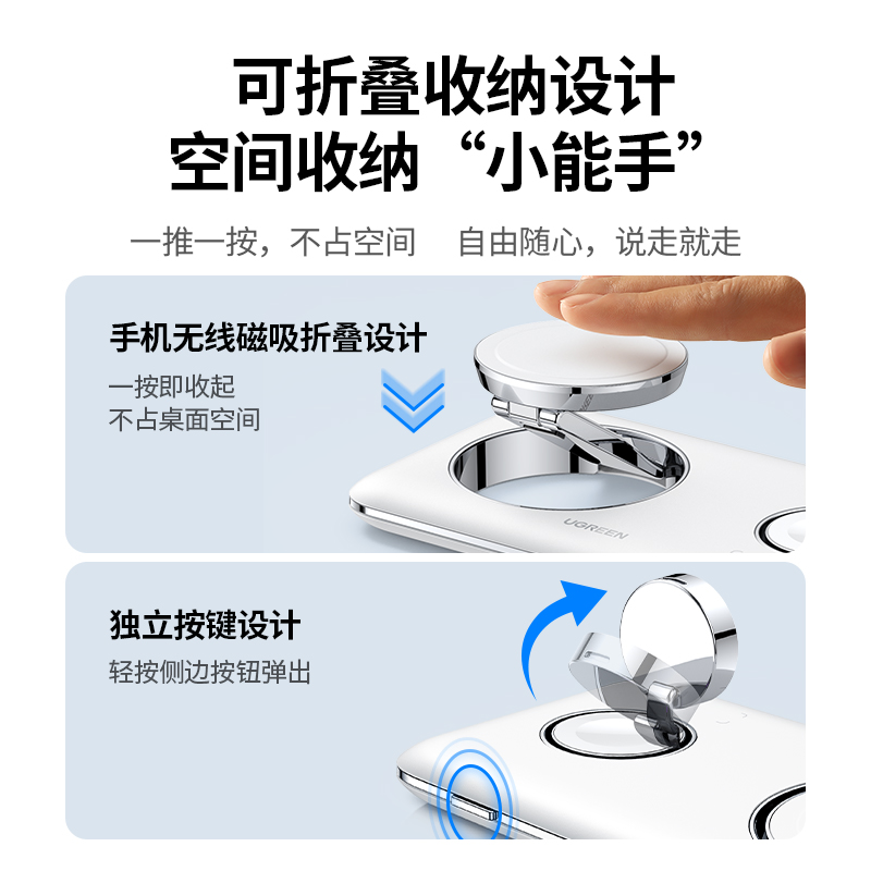 绿联二合一无线充电器mfi认证适用iPhone17promax16苹果15/14/13/12手表s11耳机手机magsafe磁吸快充支架底座 - 绿联数码旗舰店