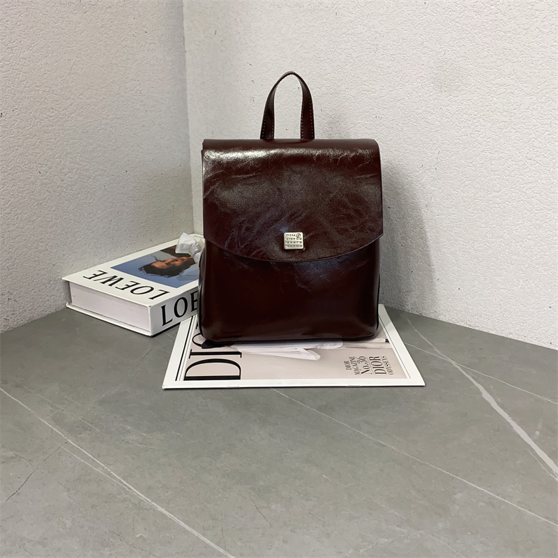 2025新款欧美时尚油蜡皮双肩背包质感百搭手提包通勤大容量单肩包