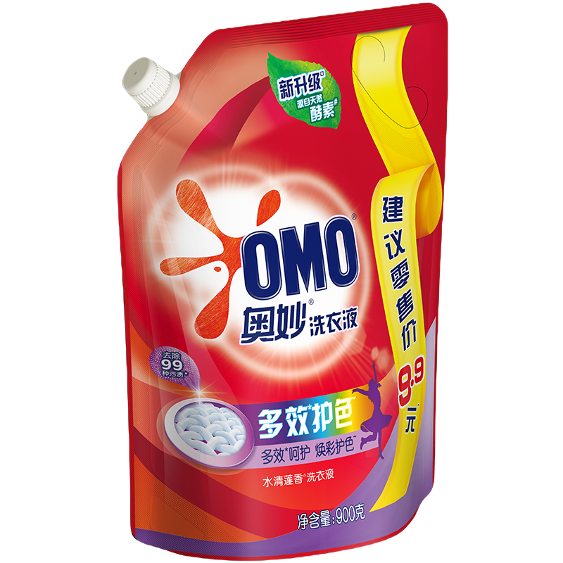 奥妙(OMO)多效护色酵素洗衣液900g 天然酵素强效去污水清莲香 - 涵潇个护生活馆