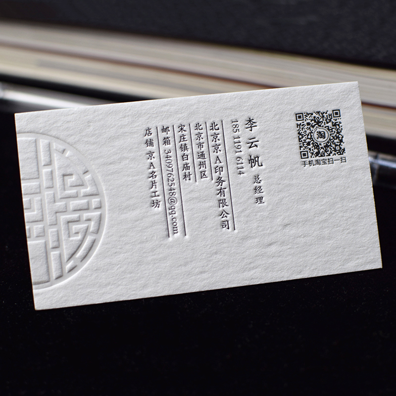 名片制作高档棉纸名片凹凸订做商务压痕名片个性特种纸印刷定制卡 - 山财工厂直销