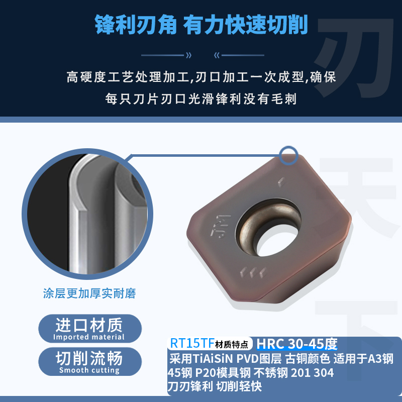 数控铣刀片不锈钢专用铣刀片SEMT13T3AGSN-JM/13T3AGTN-FM铣刀粒 - 刃天下
