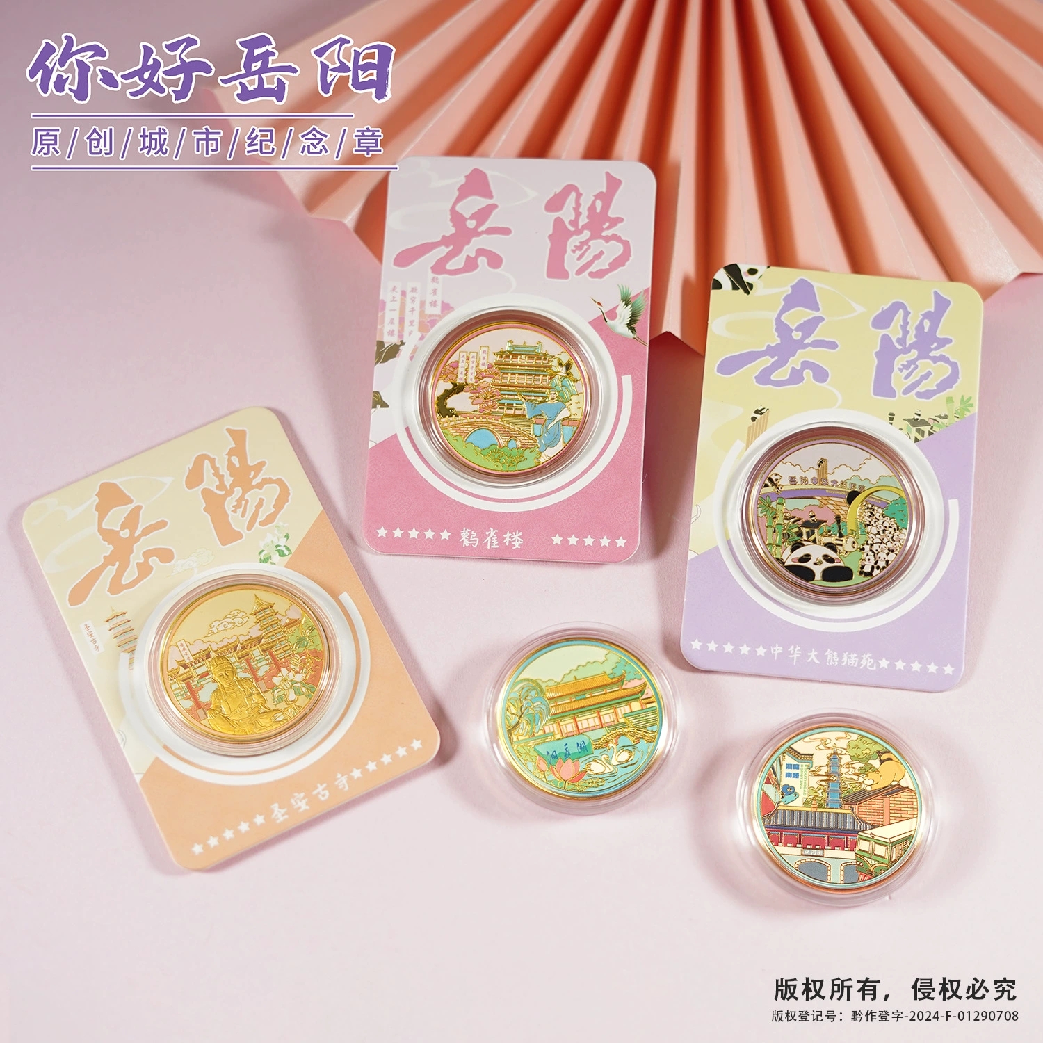 岳阳巴陵广场伴手礼湖南旅游景区纪念品岳阳楼纪念币中国风纪念章 - 出山收藏馆
