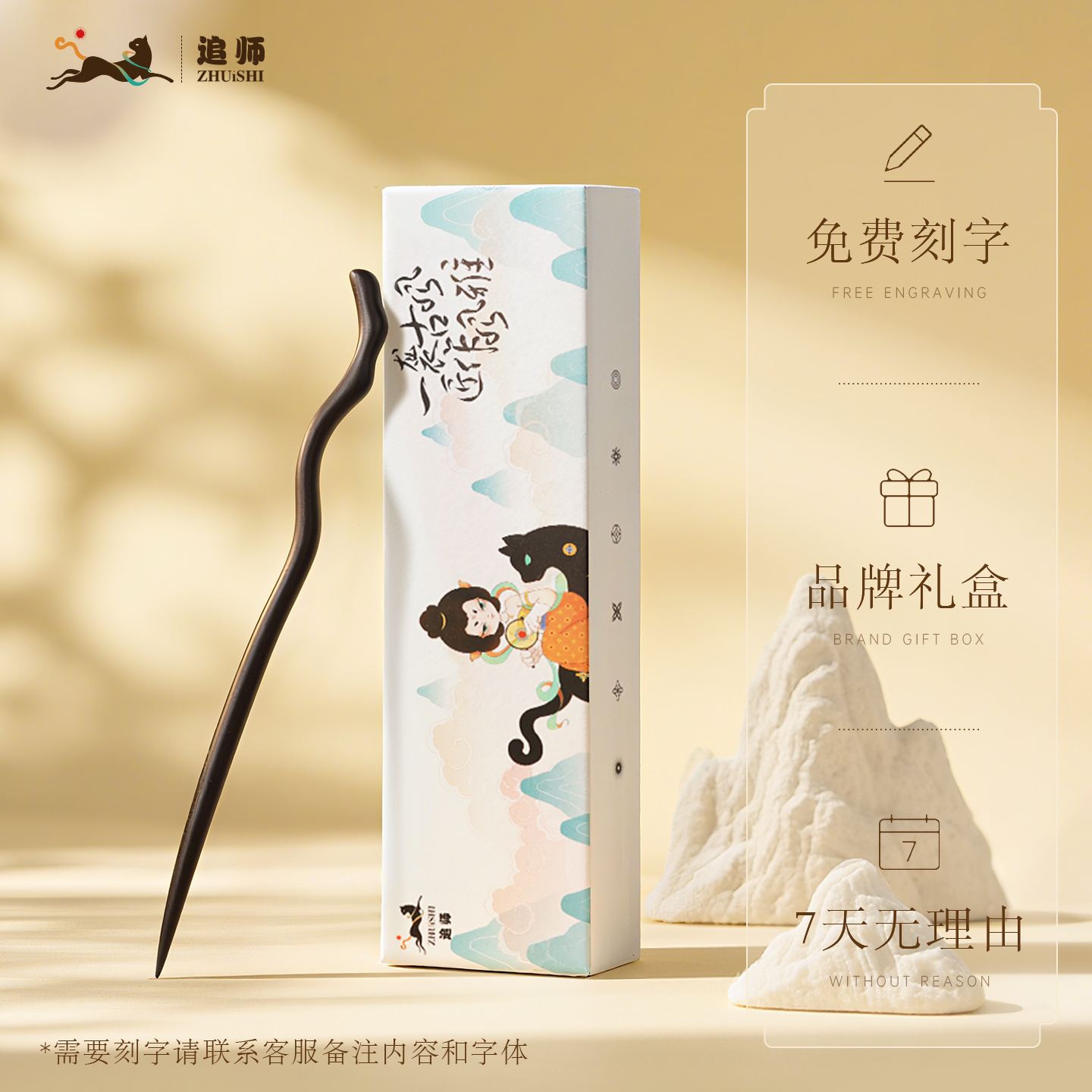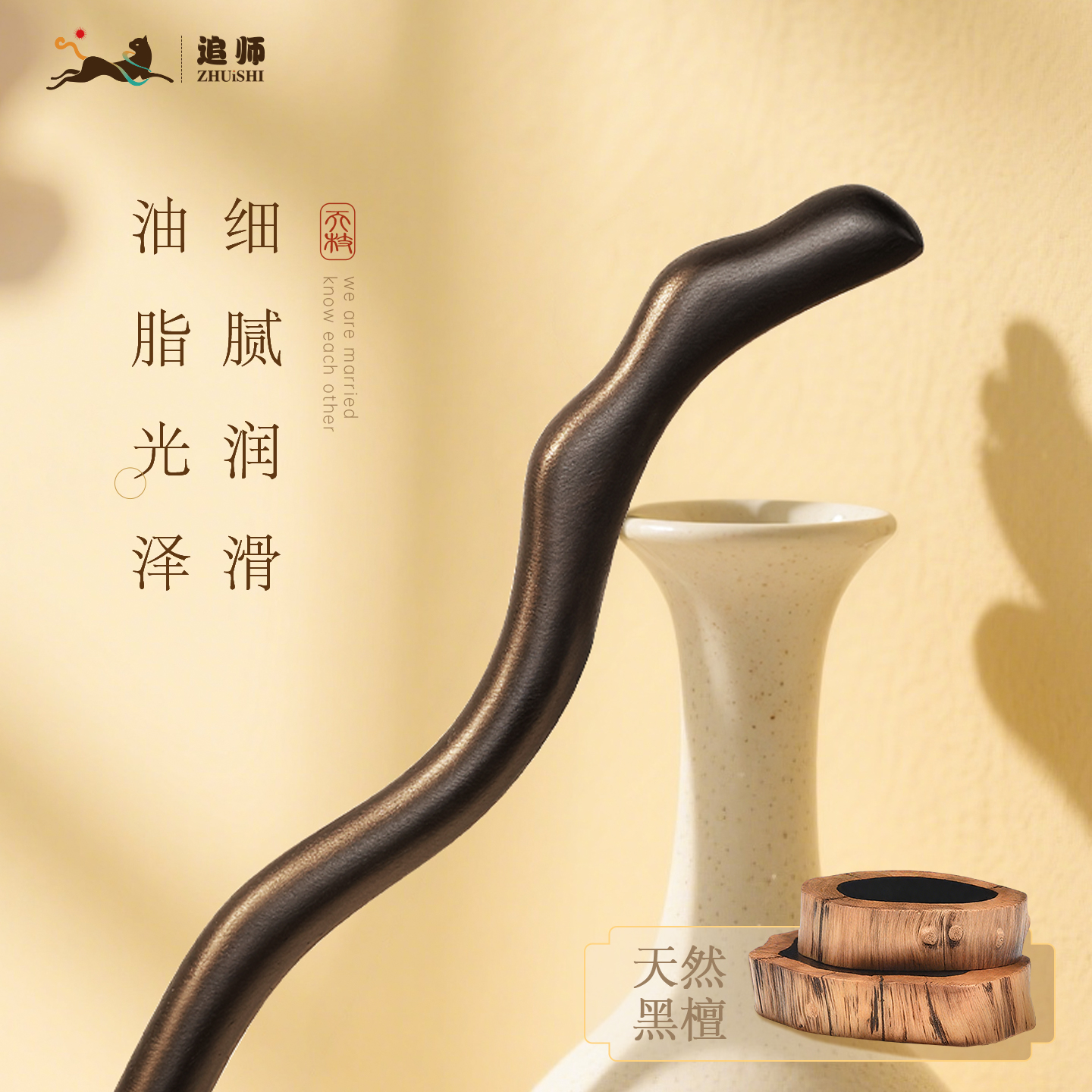 追师加长款黑檀木发簪古风盘发木簪步摇发饰现代简约高级感簪子女 - 追师原创手作