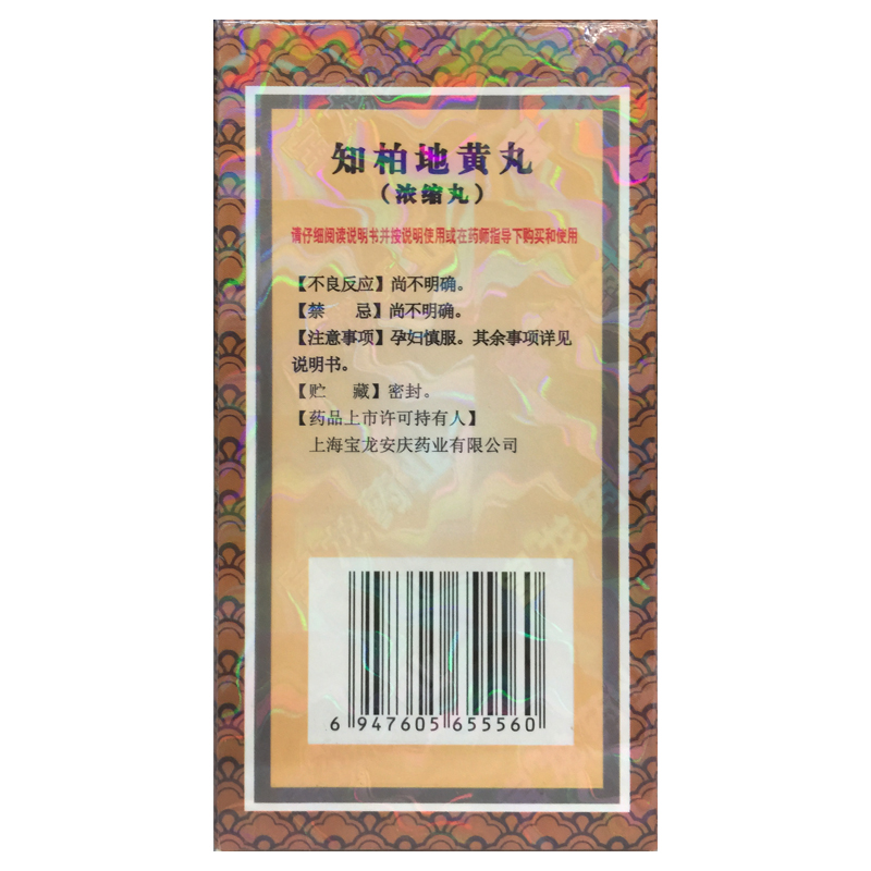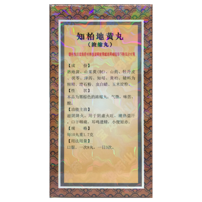 上龙 知柏地黄丸(浓缩丸) 480丸*1瓶/盒阴虚火旺小便短赤口干咽痛