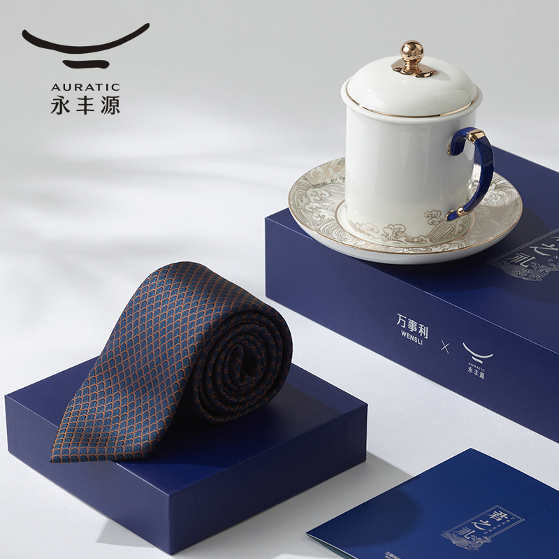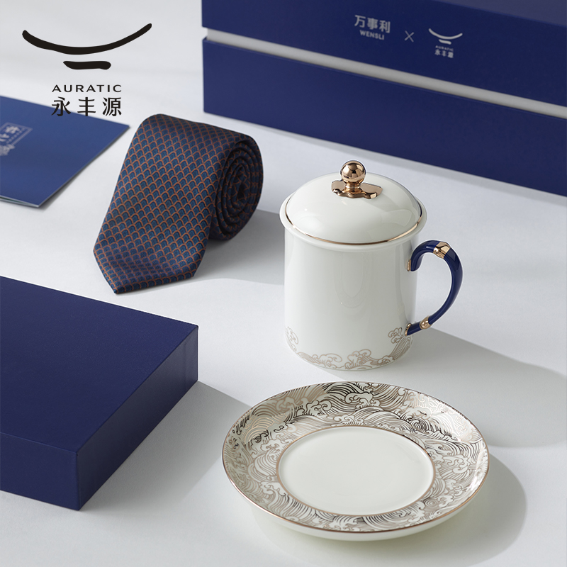 【送礼甄选】永丰源 海上明珠会议杯君之礼 陶瓷茶杯领带商务礼品 - auratic永丰源旗舰店