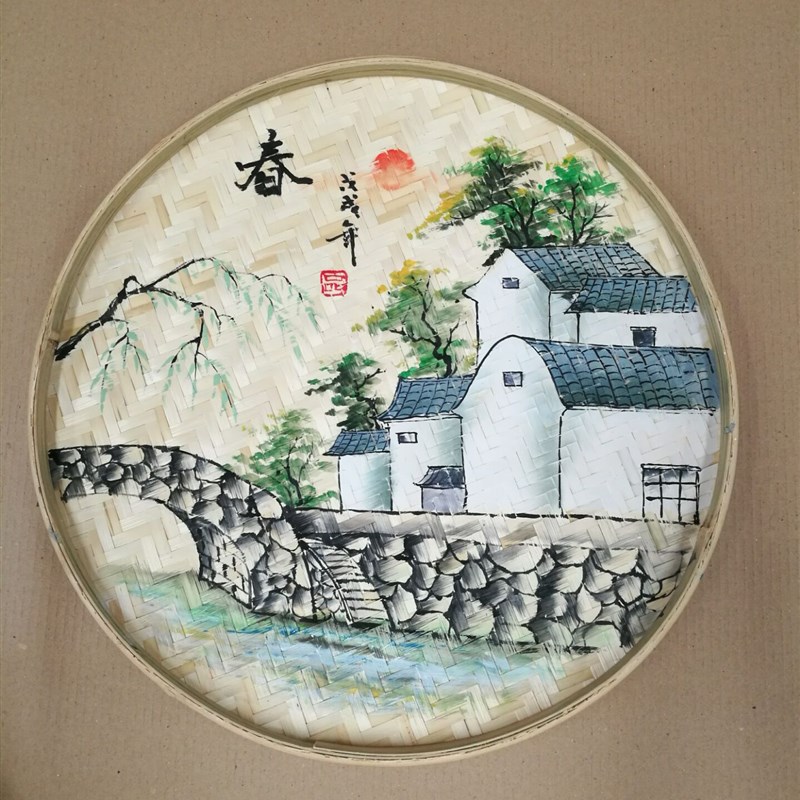 手绘簸箕画竹筛子农家乐装饰品竹编墙饰田园装饰墙壁挂饰挂件壁饰 - 绿谷工厂直销