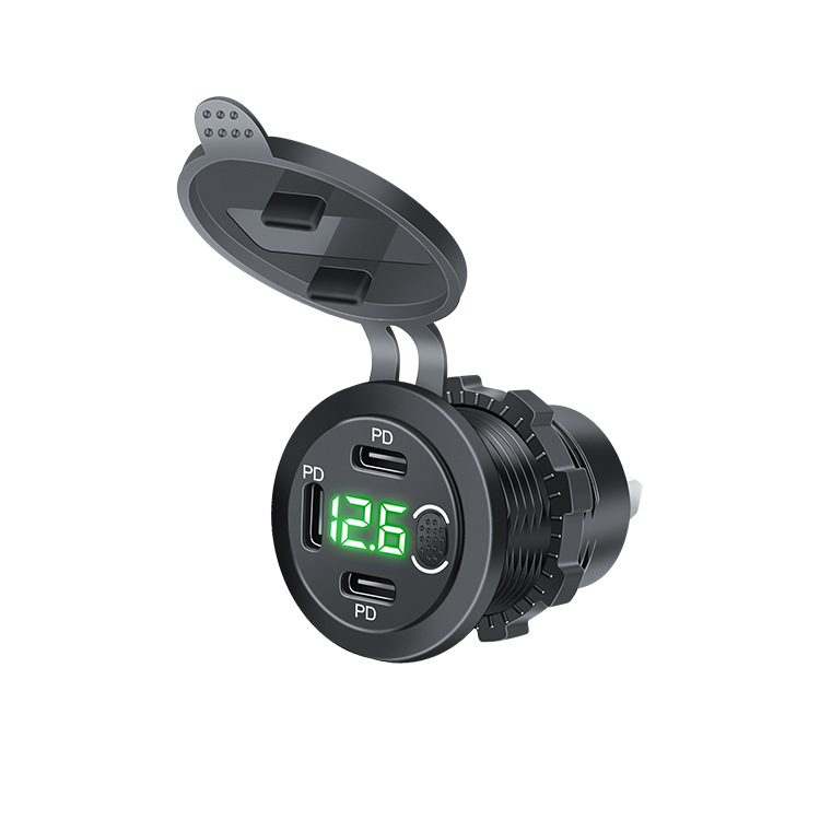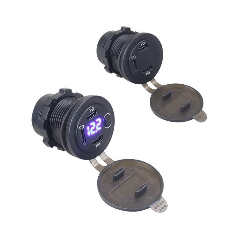 新款车载usb充电器接口三口PD带电压带开关 - 万宏电子 厂家直发