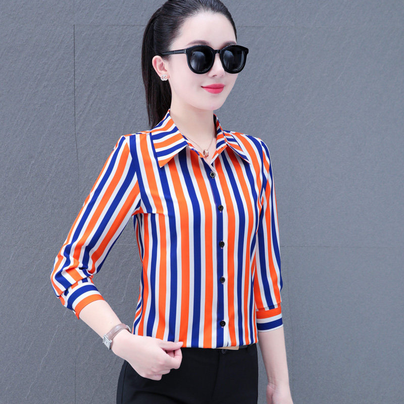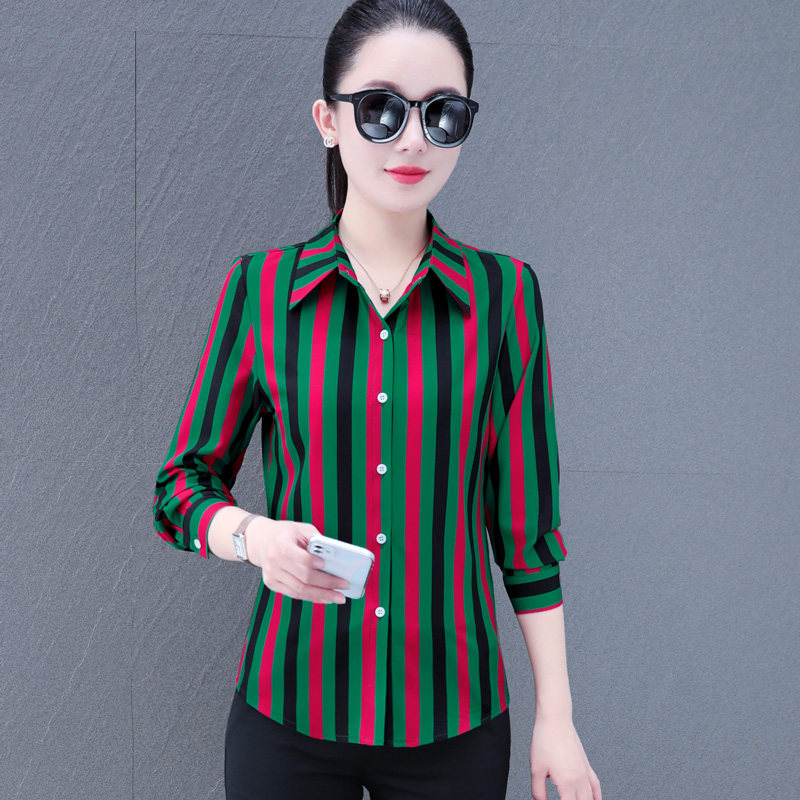您的位置:他他商城  >  女装  >  条纹衬衫女士长袖2025秋季新款中年女装洋气上衣妈妈显瘦雪纺衬衣