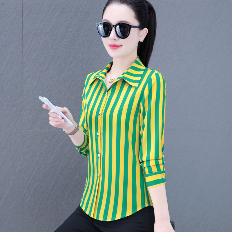 条纹衬衫女士长袖2025秋季新款中年女装洋气上衣妈妈显瘦雪纺衬衣 - 绮燕仙子女装店