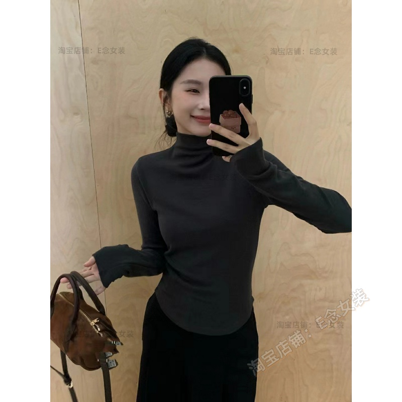 您的位置:他他商城  >   >  E念8021冬新款半高领加绒打底衫女弧形设计修身显瘦内搭长袖上衣