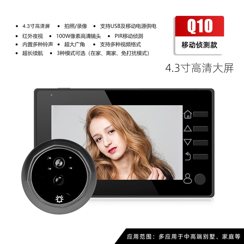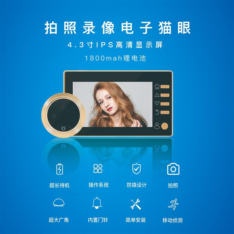 您的位置:他他商城  >   >  家用可视智能猫眼门铃高清移动侦测拍照录像报警.3寸大屏幕夜视