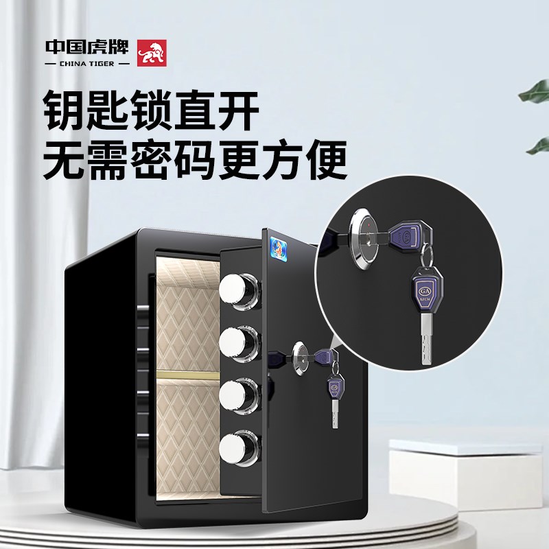 虎牌2024新款机械锁保险柜家用小型老人防盗单钥匙开保险箱迷你夹
