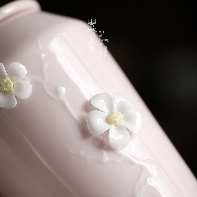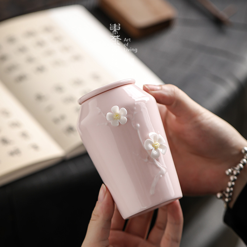 您的位置:他他商城  >   >  陶瓷茶叶罐小号袖珍茶罐车载旅行小高罐粉色手工粘花茶仓捏花茶缸