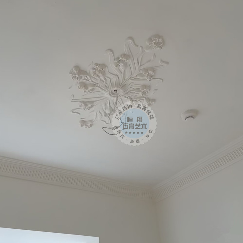 您的位置:他他商城  >   >  绝美郁金香水仙花石膏灯盘拼花吊顶装饰石膏线法式灯盘吊顶