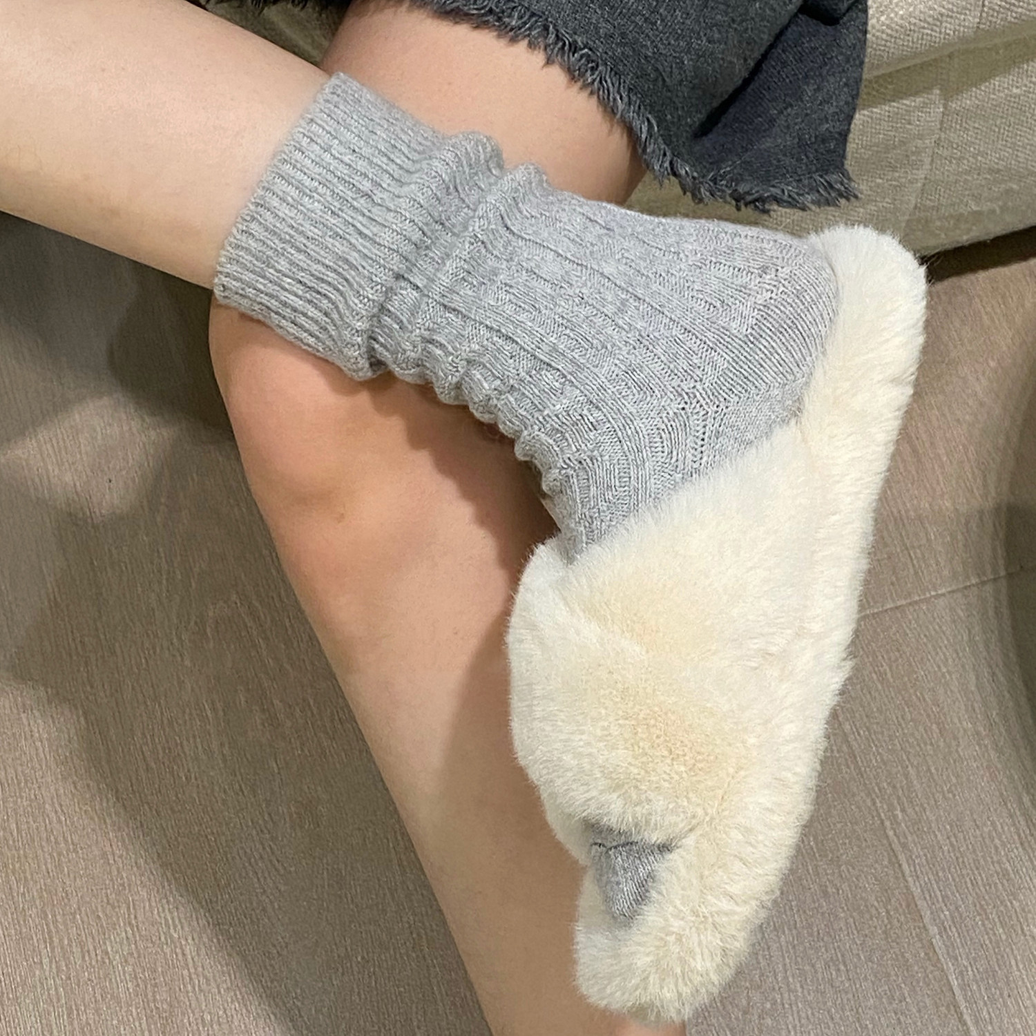 袜子女款秋冬灰色中筒袜羊毛加厚保暖复古韩系堆堆袜女春秋长筒袜 - gegema格格玛旗舰店