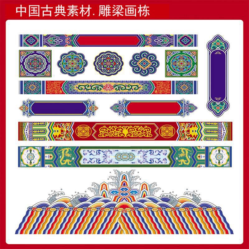 房梁横梁壁纸古建筑墙纸吊顶皇宫花纹祠堂彩绘布高清壁画定制 - 千景艺术壁画