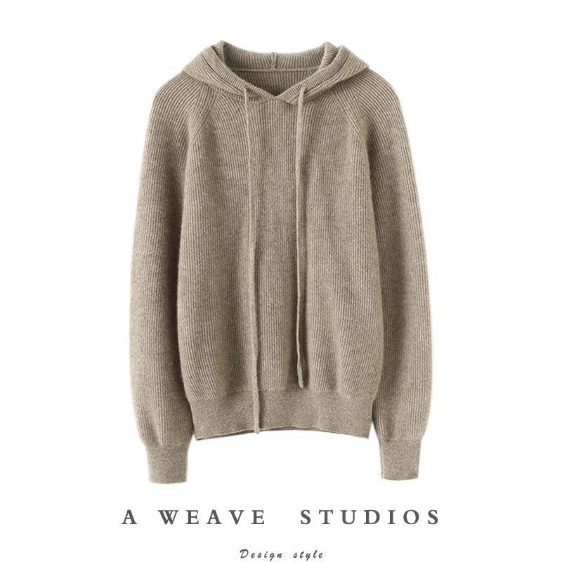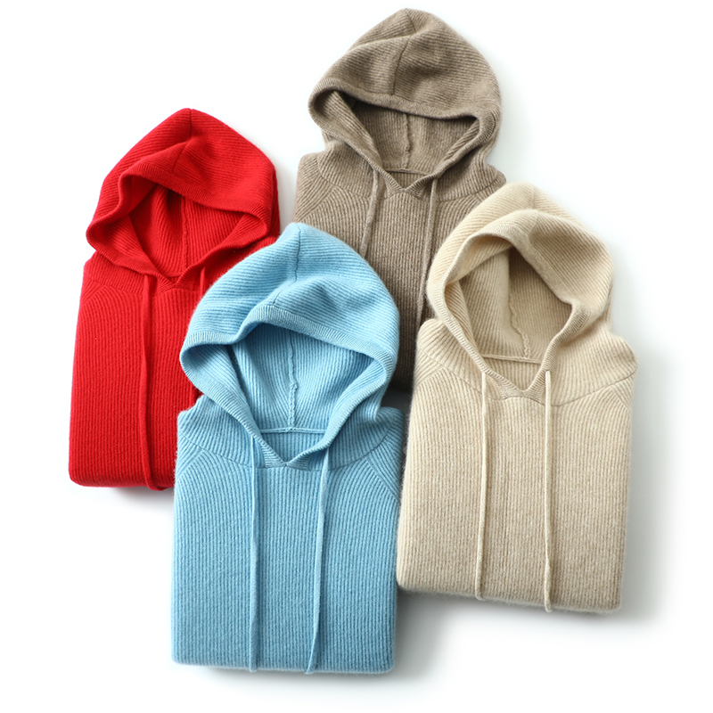 好品味不错过!带帽羊绒衫女纯羊绒毛衣连帽羊绒卫衣针织打底帽衫