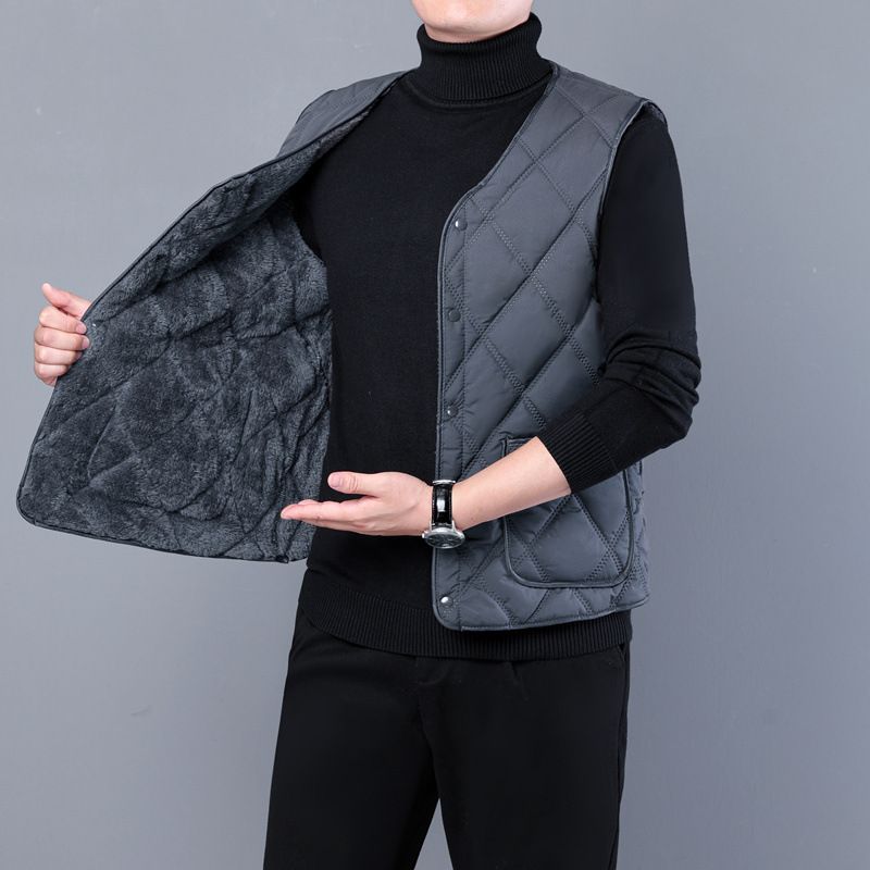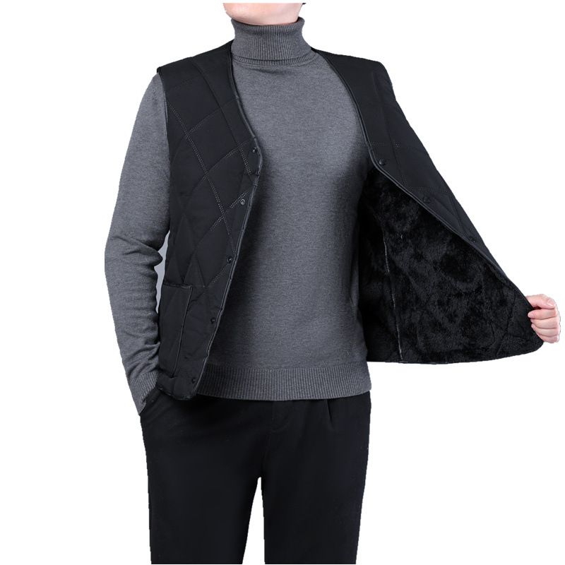 爸爸棉马甲男士加绒加厚中老年人保暖背心坎肩爷爷羽绒棉马夹秋冬 - 义政商贸城
