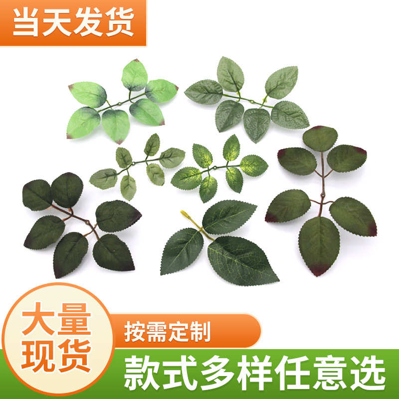 仿真玫瑰叶子丝印仿真植物假叶子婚庆植物摄影布景假花道具厂家 - 冰冰兰商贸
