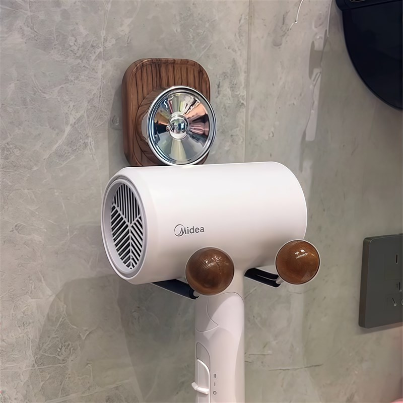 您的位置:他他商城  >   >  吹风机置物e架免打孔吸盘卫生间胡桃木高级感壁挂式电吹风支架粘